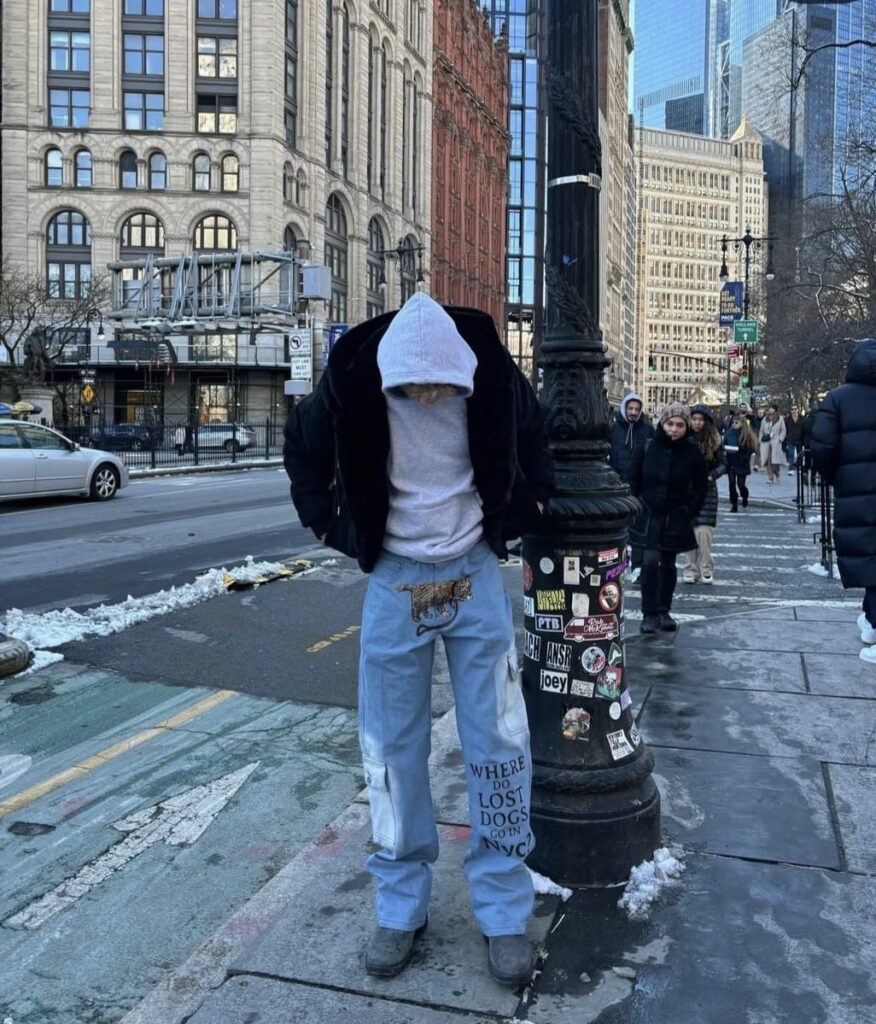 Une onde de choc figée dans le denim. Impacts artistiques dispersés, effet délavé subtil. Pour les esprits libres qui avancent avec style.