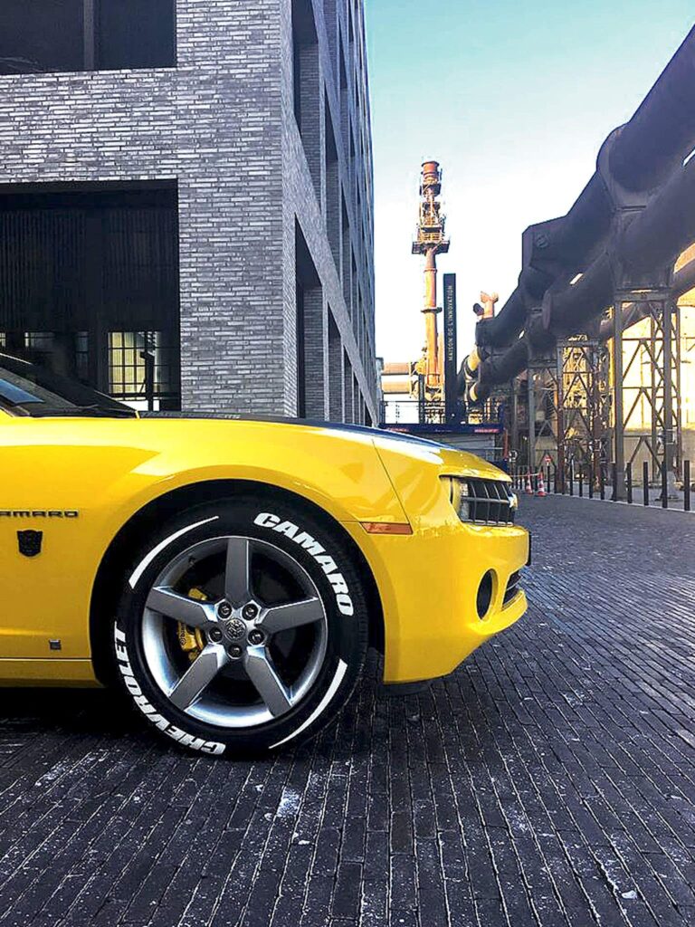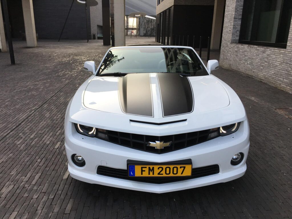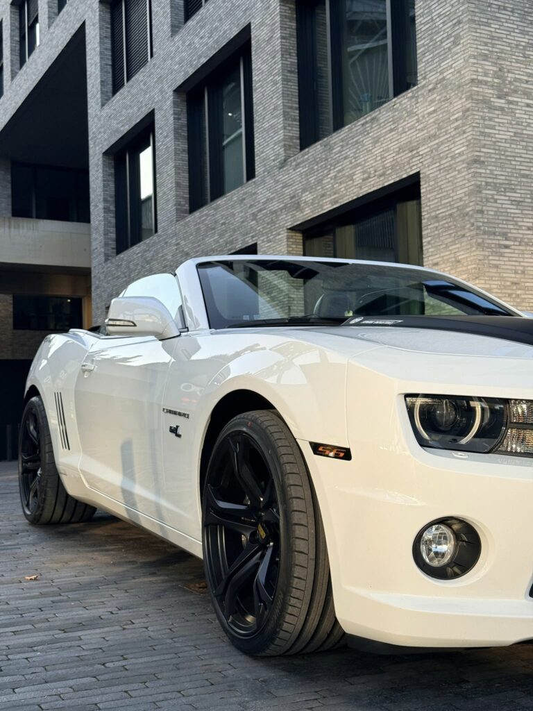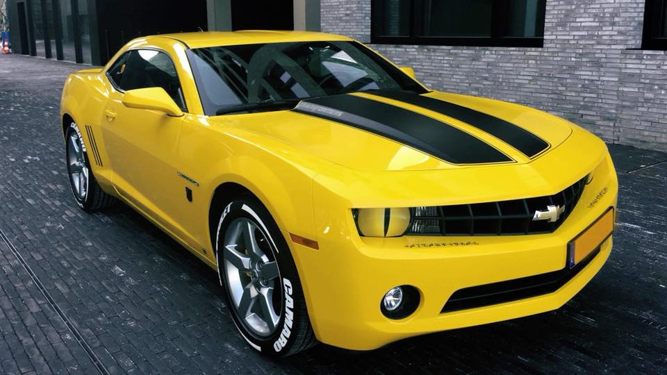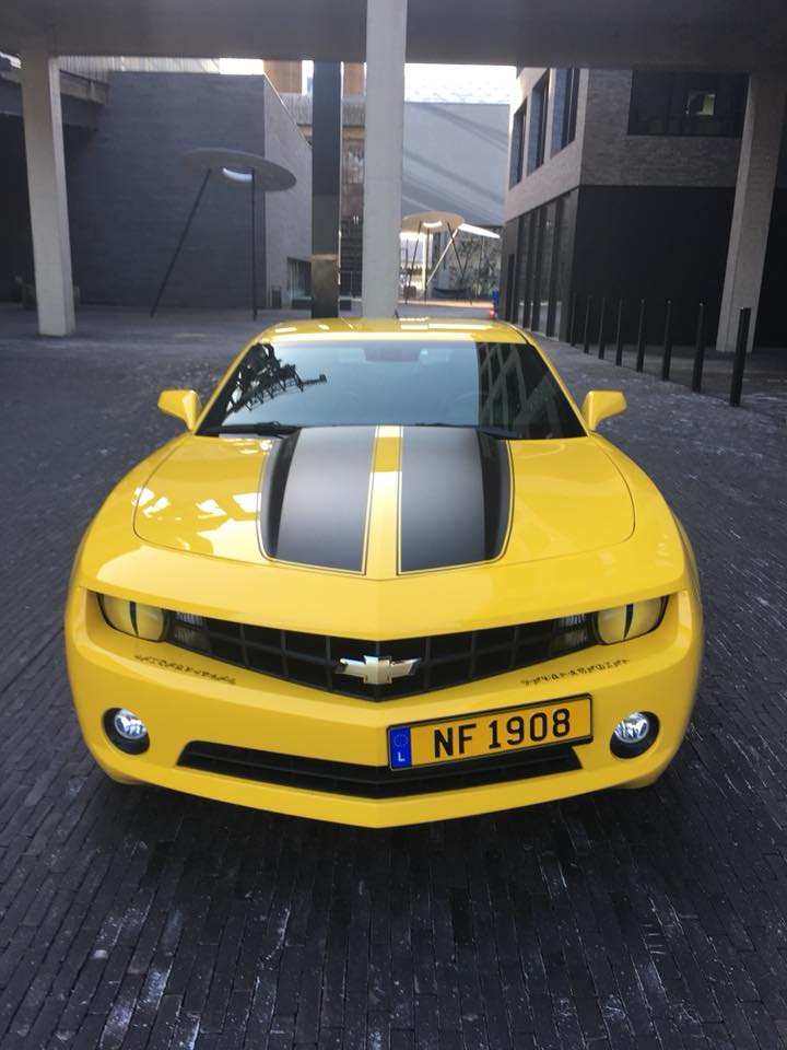 Chevrolet Camaro, couleur jaune rallye, intérieur cuir, version US, importé des États-Unis. La Chevrolet Camaro incarne le robot Bumblebbe dans le film Transformers ! Ou la Camaro Cabrio Blanche V8