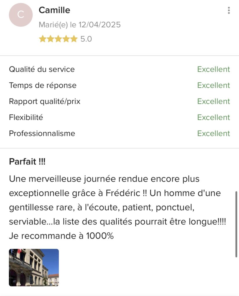 TARIF : Votre Mariage Forfait tout inclus : 1150€